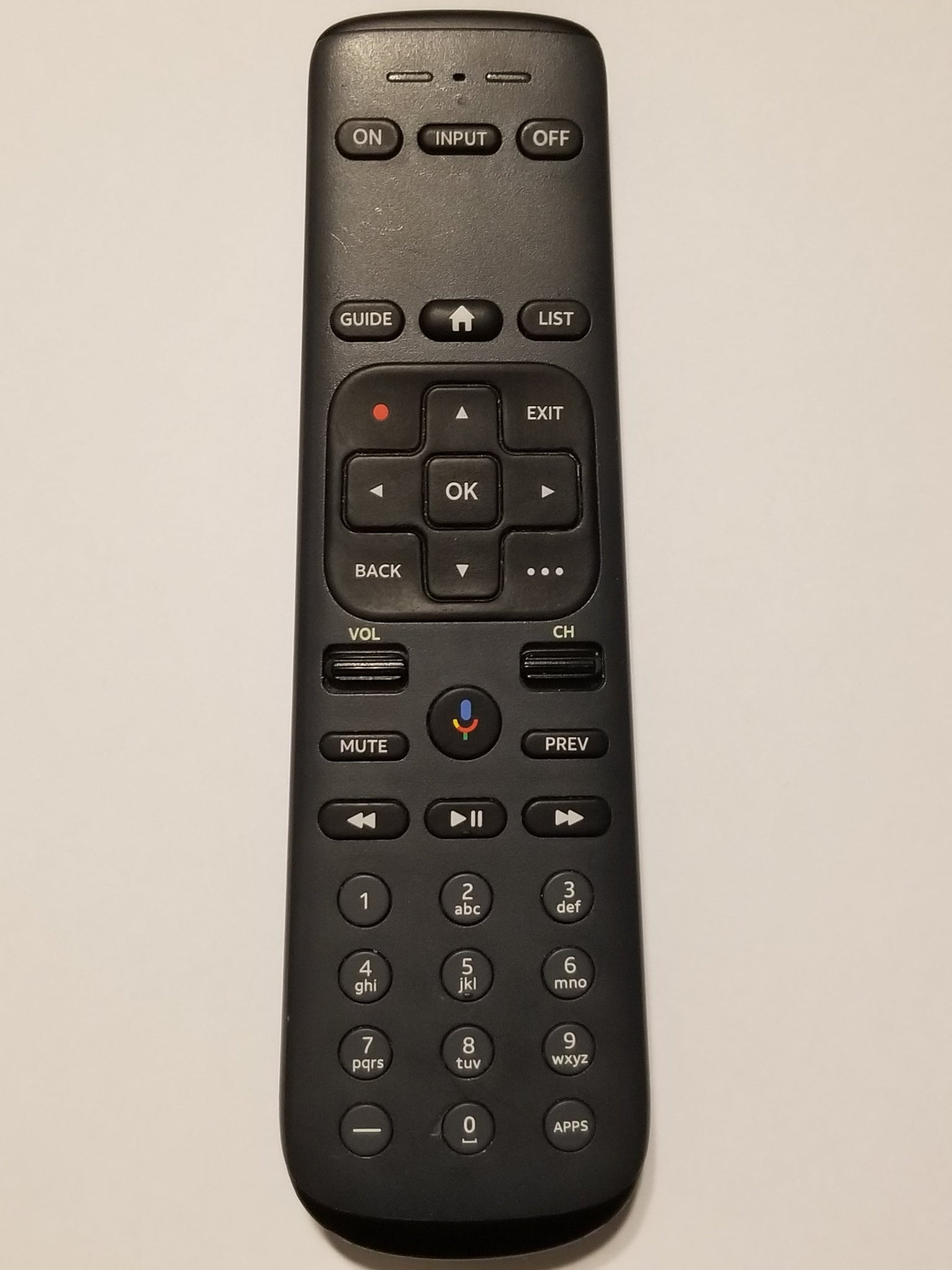 This AT&T RC82v Uverse voice remote controls a cable TV box and other features such as the ability to record live TV.