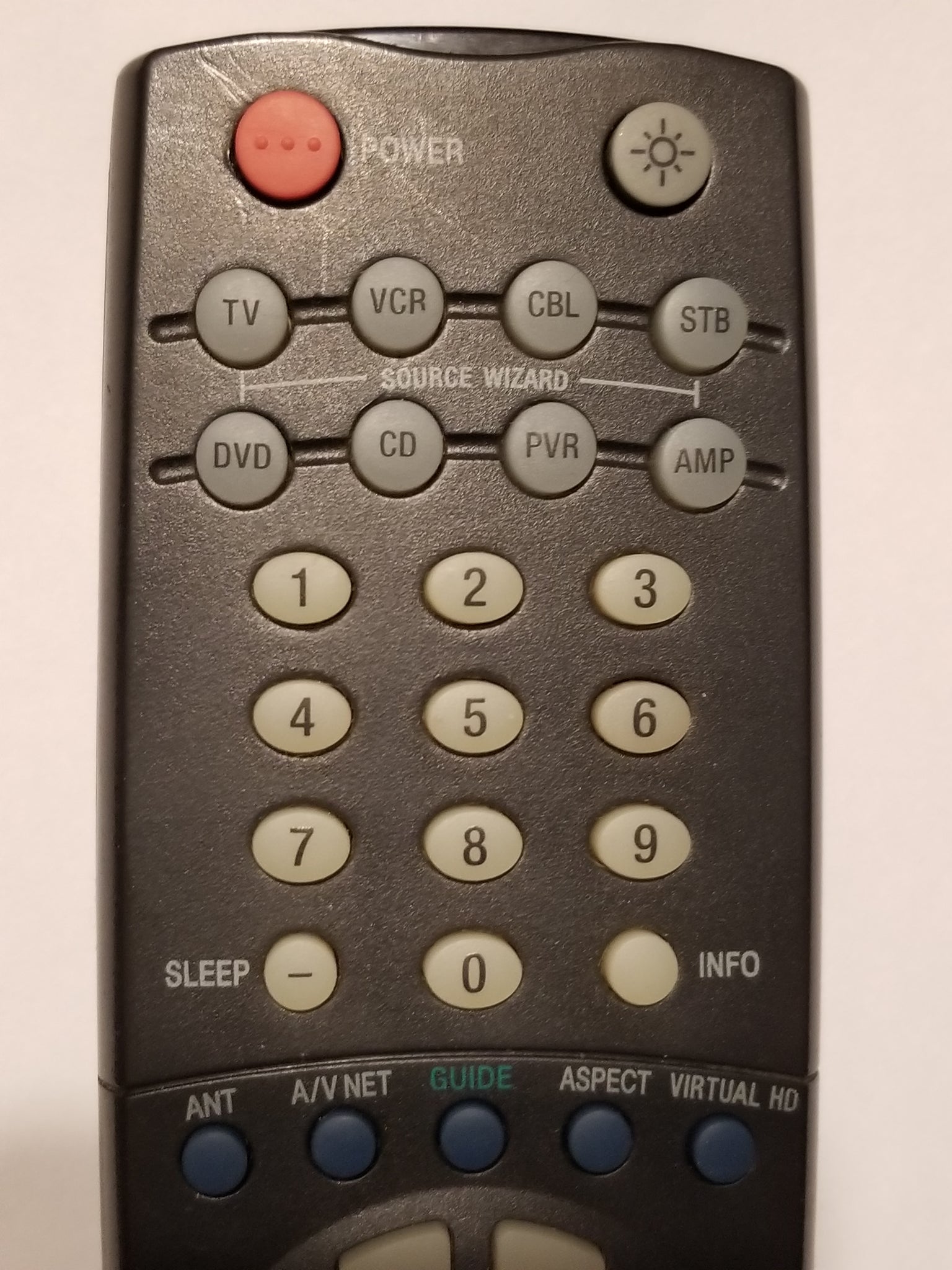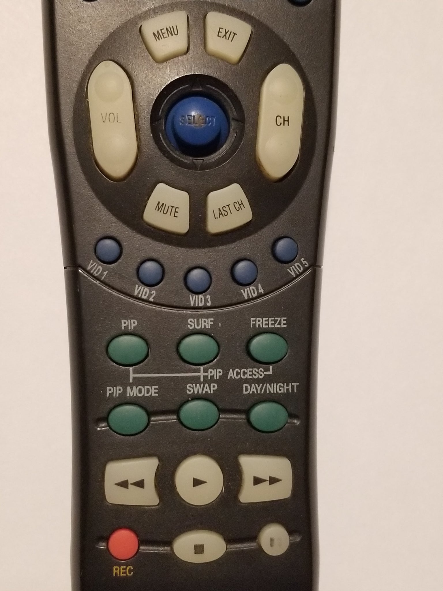This CLU-5724TSI Hitachi remote has the very convenient blue joystick button that can rapidly move between selections in different directions.