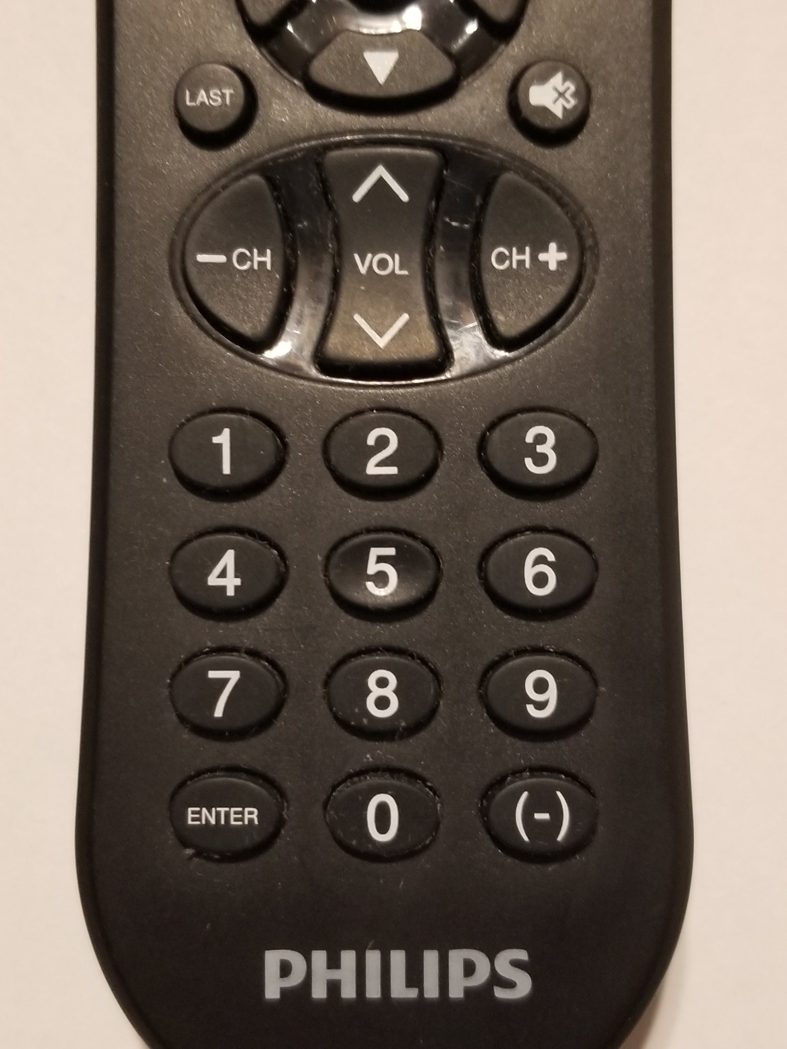This Philips SRP2013B/27 CL5 7252 1935 1742C remote control operates a TV.